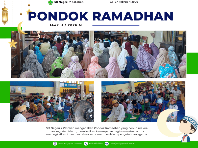 SD Negeri 7 Patokan mengadakan Pondok Ramadhan yang meriah dan penuh makna pada tanggal 23-26 Februari 2026, dengan berbagai kegiatan islami yang dirancang untuk meningkatkan iman dan takwa murid-murid. Kegiatan dimulai dengan sholat dhuha berjamaah, dilanjutkan dengan tadarus Al-Quran dan ceramah hikmah puasa yang disampaikan oleh Bapak Moh. Masbaidi, S.Pd.I selaku guru Agama yang berkompeten. Selain itu, murid-murid juga mengikuti ta'limul qur'an, belajar membaca dan menghafal Al-Quran dengan metode yang efektif. Kegiatan lain seperti games edukatif, dan kegiatan kreatif lainnya juga dimeriahkan untuk meningkatkan semangat dan keseruan Pondok Ramadhan. Dengan adanya Pondok Ramadhan, diharapkan murid-murid SDN 7 Patokan dapat memperdalam pengetahuan agama dan meningkatkan kualitas spiritual mereka.